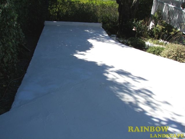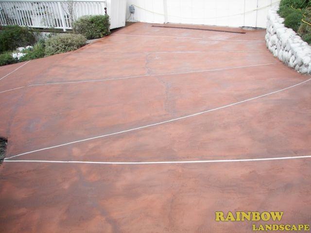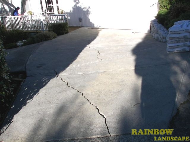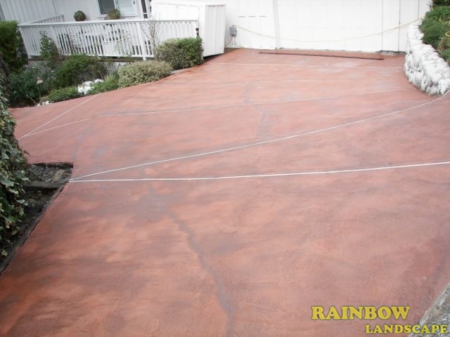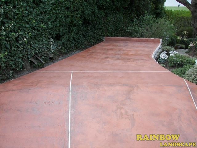 Among the landscape contractors that submitted the bids, Rainbow Landscape was selected to do this landscaping project. The homeowner, the real state realtor and the representatives from the home staging company were very pleased with the way we fixed and stained the concrete driveway in color red, along with a white-line square pattern. Our solution to the cracked concrete driveway is cost effective, that included a low rate to fix it up and lasting for a long time, while at the same time makes it look good as new.