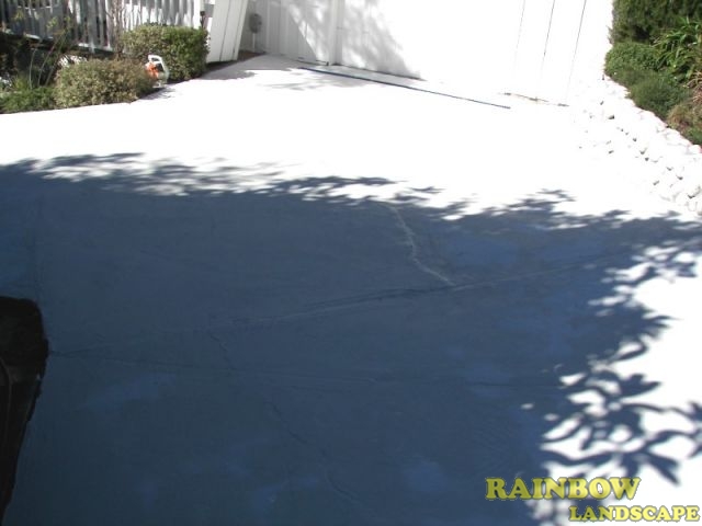 Rainbow Landscape Irrigation & Maintenance (landscape contractor) resurfaced this cracked driveway in a property in Tiburon, Marin County, California. This property was ready to be placed on the market for sale, and some improvements needed to be made to make it more appealing to potential buyers. A home staging company contacted different landscaping contractors to bid on this project and to suggest alternatives to improve the landscape in this property without going over the budget considered for this landscaping project. The home staging company requested the following services to be presented in the bid: cleaning up garden, garden lighting, installation & configuration of an irrigation system, minor stone work, mulching, planting, power washing the patio and walkways, and improving the cracked concrete driveway.