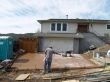 We started the landscaping work in the backyard. The first thing we did was a full cleaning. After the backyard was cleaned of foliage and weeds, we did the surface grading for the entire backyard. The next step was interlocking the long stone retaining wall going from the east side yard all the way to the backyard until it met the fence in the far back side of the property. Then another retaining wall, this time building a redwood retaining wall with a garden box to separate the basketball court area and the stone patio area. The backyard has two levels, so we built stone stairs to connect the basketball court area in the lower level and the stone patio area in the upper level. To connect the house with the stone patio in the upper level, we built a redwood deck in between them. Then we proceeded to build the stone patio. The existing hot tub was relocated and moved to a corner in the upper level and set up to work properly along with redwood stairs leading to the stone patio. We went back to the lower level to install new artificial grass around the basketball court. Then we built a colored concrete back patio going around the back of the house to connect the backyard to the front yard through the west side yard. To finish with the backyard work, we did the required planting, garden lighting and drip irrigation system installation.