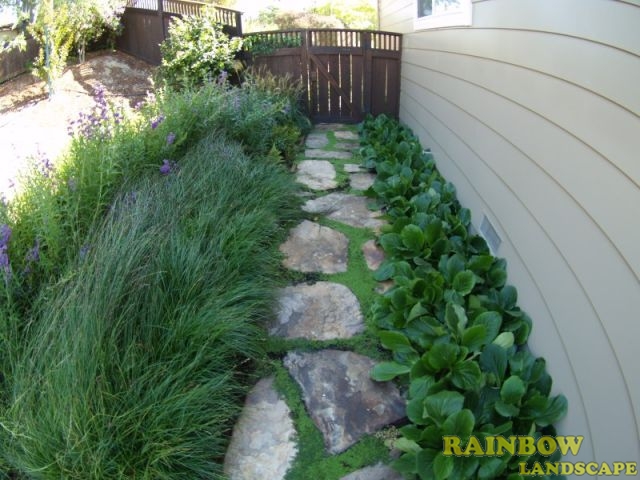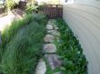 After finishing with the backyard and west side yard, we worked on the east side yard. The side yard was cleaned up, the surface graded, step stones were placed as a walkway and finally groundcovers and shrubs were planted on both sides.
