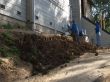 Drainage, garden box, irrigation system, mulching, planting and veneer bluestone retaining wall.