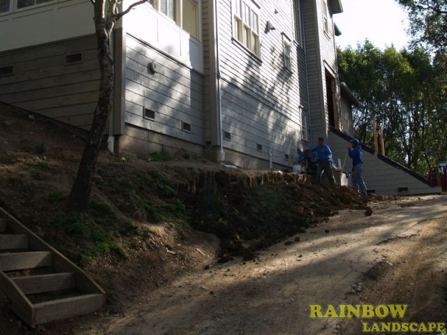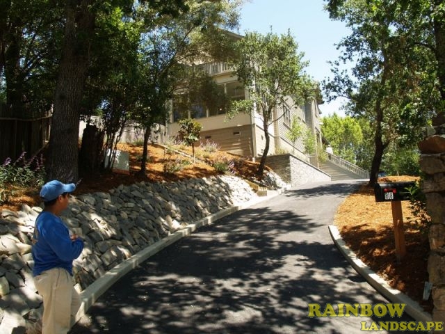 Rainbow Landscape Irrigation & Maintenance (landscape contractor) did this landscaping and hardscaping project in San Anselmo, Marin County, California. This is a brand new house that required new landscape construction. This landscape project involved both the front yard & backyard.