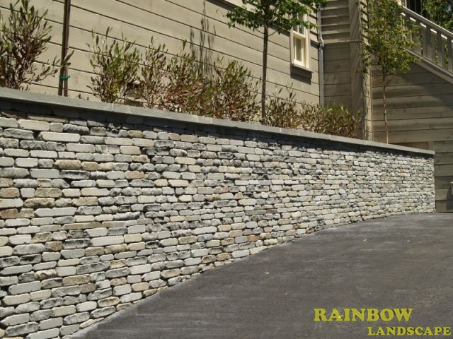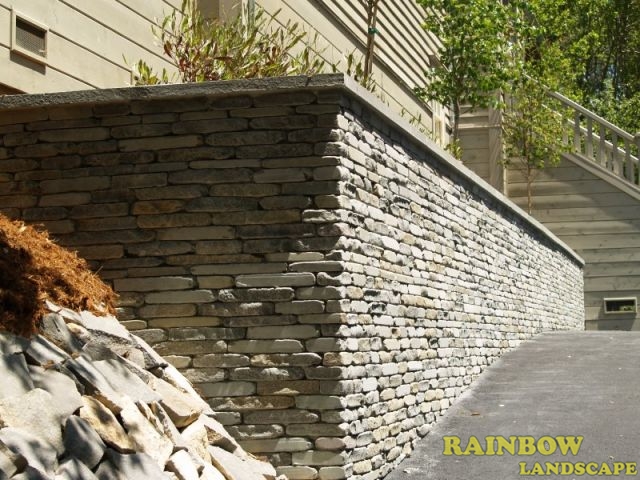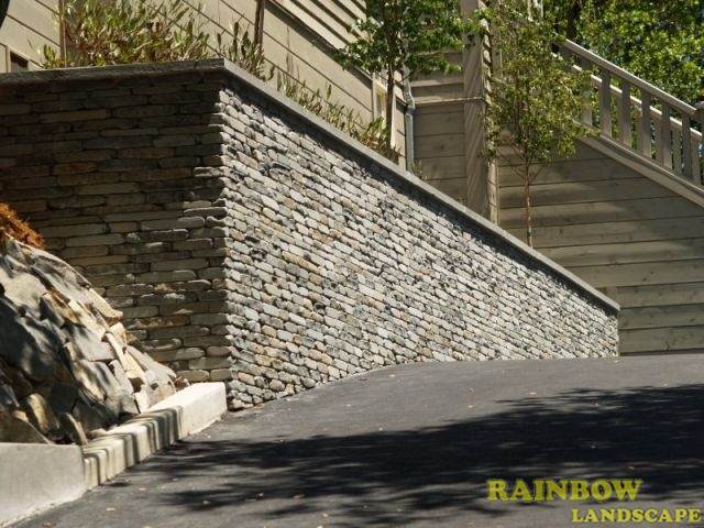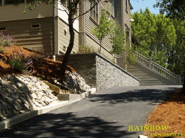 Landscape project with veneer retaining wall done in San Anselmo, Bay Area, California.