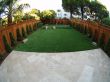 Artificial lawn, boulder stones, drip system, fences, garden lighting, mulching, planting, putting green & stone patio.