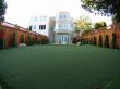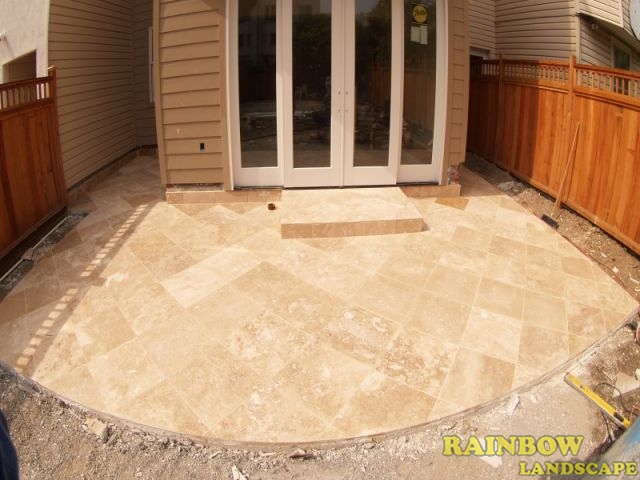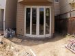 The first thing to do was a full garden cleaning up to get rid of the grown weeds and other waste. Then grading the surface for the artificial grass and putting green installations. A drainage system was built to drain out rainwater from the backyard. Then a second and final grading was done again. Once we had a flat and clean surface, we started building a 6-ft tall redwood fence for privacy. And to complete the first phase of the landscape project, we built a stone patio right in front of the backdoor, with a landing step between them.