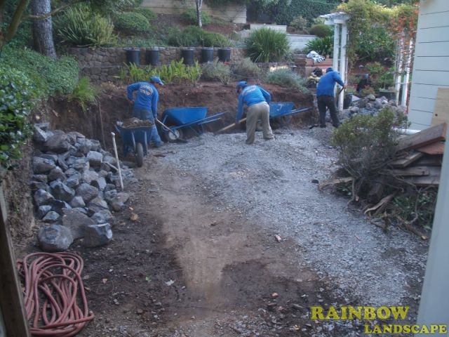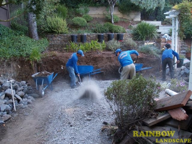 Rainbow Landscape irrigation & Maintenance (landscape contractor) did this landscape & hardscaping project in Mill Valley, Marin County, California. This is a house where Rainbow Landscape has been provided garden maintenance services since 2003. The owners decided to sell this property in 2009 and they highly recommended our garden maintenance services to the new homeowners. Since the landscape was in a good condition, the new owners wanted to modify the backyard space to increase the play area for their children, and they scheduled a visit to discuss the project further. The homeowners approved the landscaping project and we started working right away.