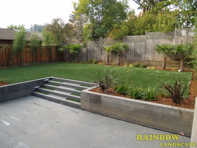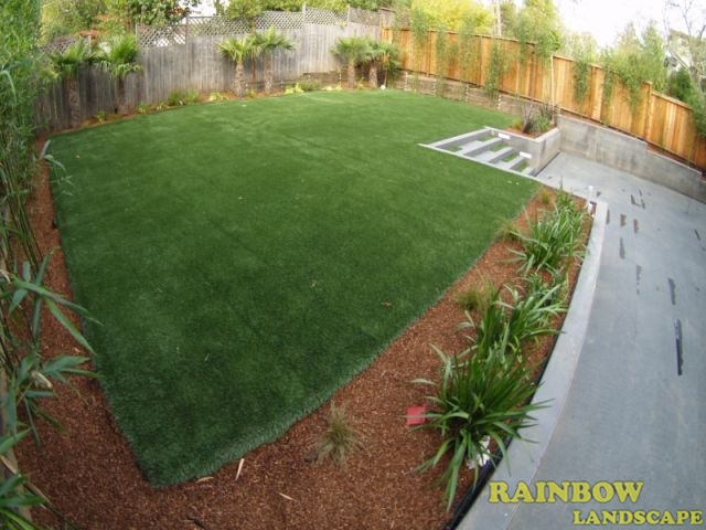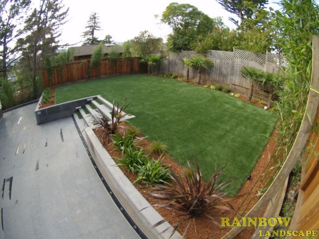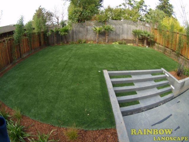 Artificial grass for backyard, driveway, fencing, garden lighting, mulching, planting, sod, retaining walls, stairs & stone patio.