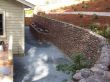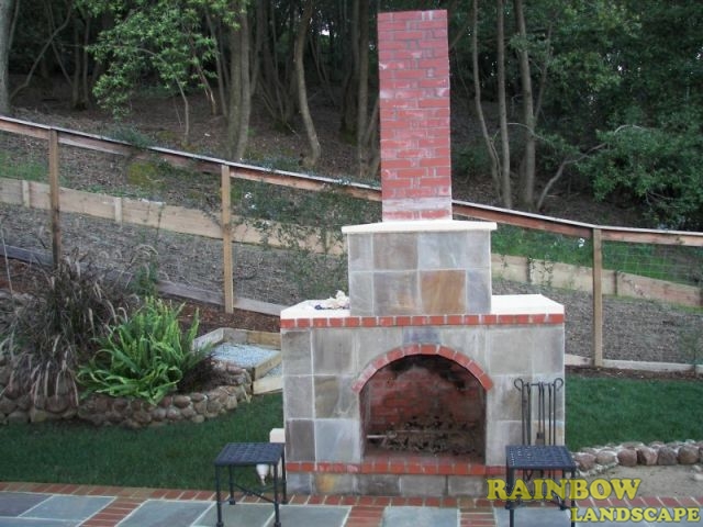 The outdoor custom designed fireplace was built using solid concrete for both the foundation and the walls, powered by a natural gas line, and the walls were completed with a combination of bluestone tiles and red bricks finish to match up the new built outdoor patio. An existing block retaining wall running along the side yard of the house was resurfaced with Sonoma Fieldstone. A new outdoor custom designed waterfall along with a few garden beds were built at the end of this retaining wall and we also applied the same Sonoma Fieldstone finish.