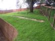 To complete this backyard outdoor landscape project, we laid new sod around the new outdoor stone patio in the backyard. Then we planted many groundcovers, plants and trees, followed by the installation of an irrigation system set up to water all the new plants and natural grass areas. The last thing to add the final touch for this backyard was to mulch all the area behind the retaining wall with redwood mulch.