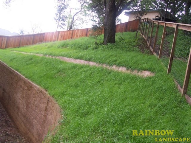 Rainbow Landscape Irrigation & Maintenance (landscape contractor) did this hardscaping and landscaping project in the city of Novato, Marin County, California. This house was recently built but the backyard had no landscape at all. The homeowner contacted Rainbow Landscape to get ideas and a free estimate for landscaping his backyard. The homeowner liked the ideas presented to him and he approved the landscape plan submitted. This project was approved in a material & labor basis.