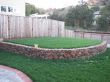 The grass area in the backyard has two levels, which are separated by a retaining wall built with concrete and resurfaced with Sonoma Fieldstone finish. New sod was laid out and plants were planted along with an irrigation system to water the new turf and plants. A new garden lighting set up was installed to complete this outdoors backyard landscape project.