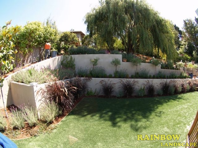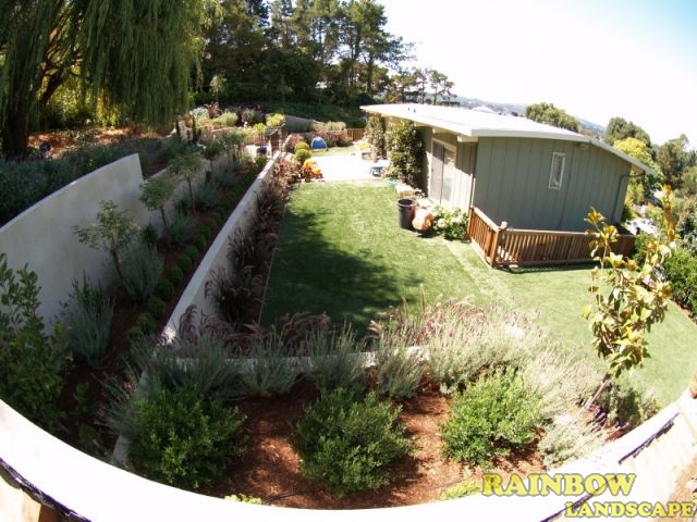 Rainbow Landscape Irrigation & Maintenance (landscape contractor) did this landscaping and hardscaping project in the city of Tiburon, Marin County, California. The new homeowners of this property contacted a landscape architect to design the lay out for a new landscape plan for the entire backyard. This landscaping architect presented the landscape design and the homeowners asked him for a licensed landscape contractor to do this project. This architect already knew our company and he highly recommended Rainbow Landscape to the homeowners to do the landscaping project.