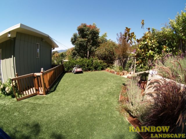 Backyard landscaping & artificial grass done in Belvedere-Tiburon, Bay Area, California.