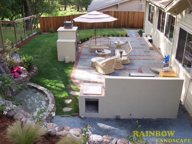 Rainbow Landscape is an experienced company in the BBQ Islands field. We can build custom-made BBQ Islands from scratch along with the fireplace, fire pit and patio. Countertops with natural stone, body with cinder block reinforced with rebar, walls with stucco or natural stone finish, extra side burners, you name it! Just call Rainbow Landscape at (415) 485-9231.