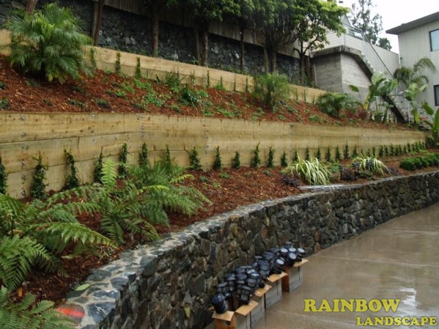 Rainbow Landscape has the knowledge and experience to build any type of retaining wall, any lenght, height and we can build it working with different materials.