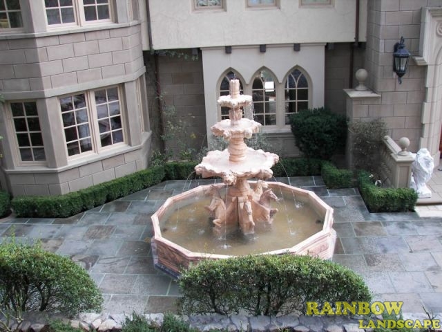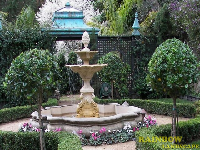 Water features are considered as a full range of water related garden decor, which includes cascading water, garden fountains, pools, ponds and waterfalls. Rainbow Landscape can install different water features to enhance the look of your garden. Water features are popular for both small and large gardens. The pleasant flow of water helps block background noise and gives you tranquility and peacefulness in your outdoor living areas and patios.