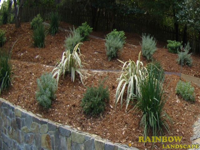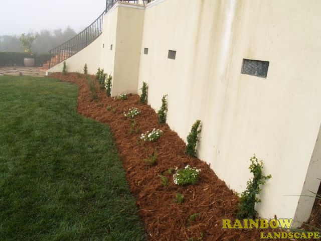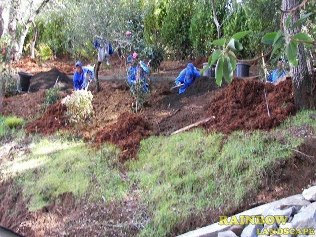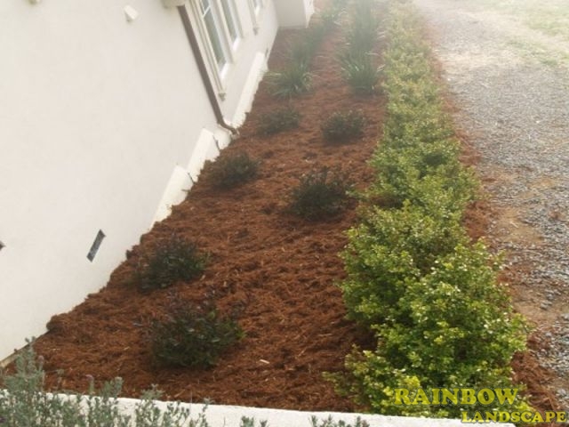 Spraying bark, compost, rubber mulch, sawdust, wood chips & others to protect the soil.
